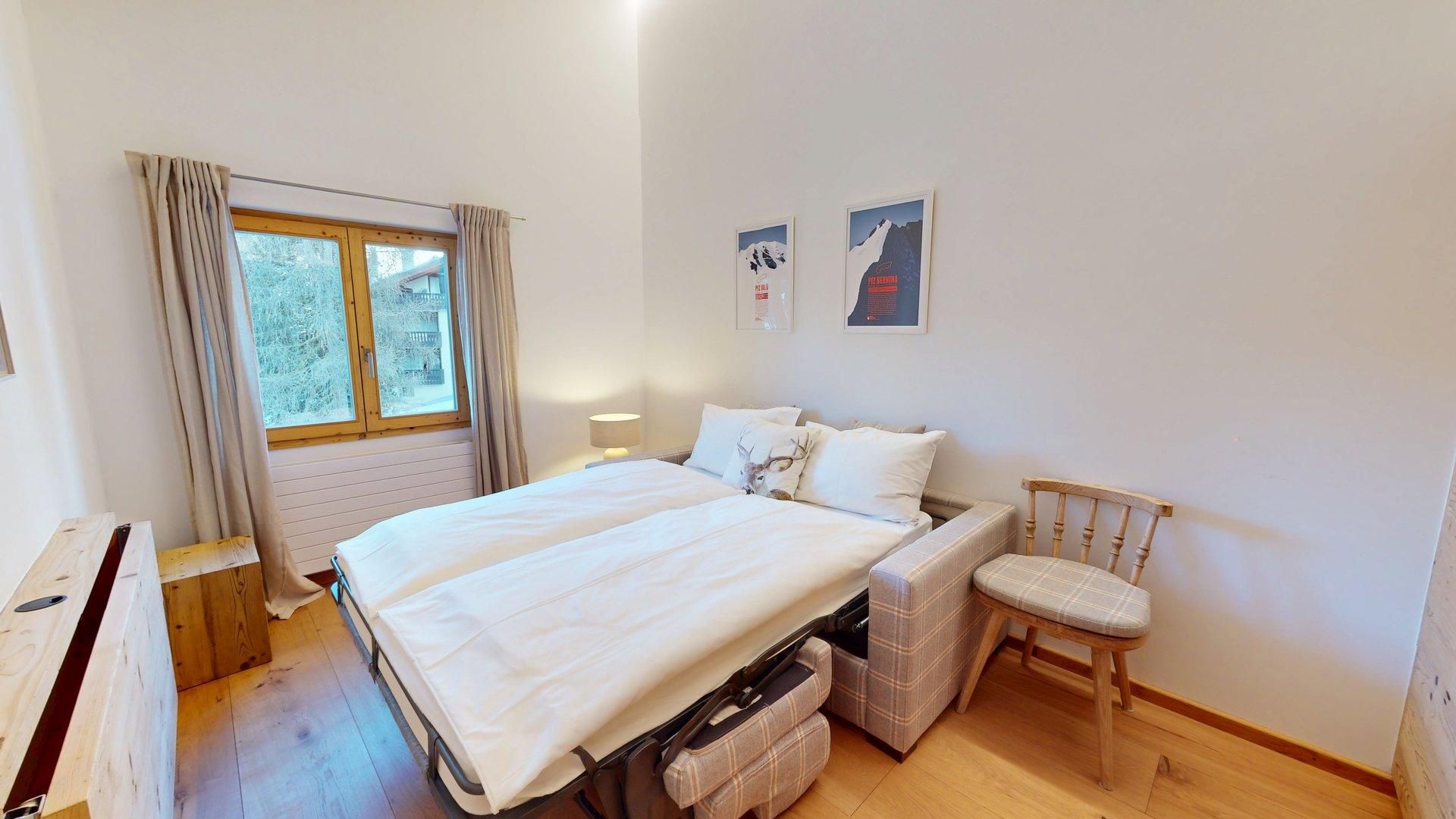 Luxuriöses Ferienapartment mit spektakulärer Bergsicht. Hochwertig renoviert. Helles Wohn- /Esszimmer mit offener Küche. Kamin und Balkon. Waschmaschine in der Wohnung. Grosses Elternschlafzimmer mit Dusche/WC. Ein Doppelschlafzimmer mit Homeoffice-Möglichkeit sowie bequemes Schlafsofa für 2 Personen. Gratis WLAN. 1 Aussenparkplatz.Weniger lesen