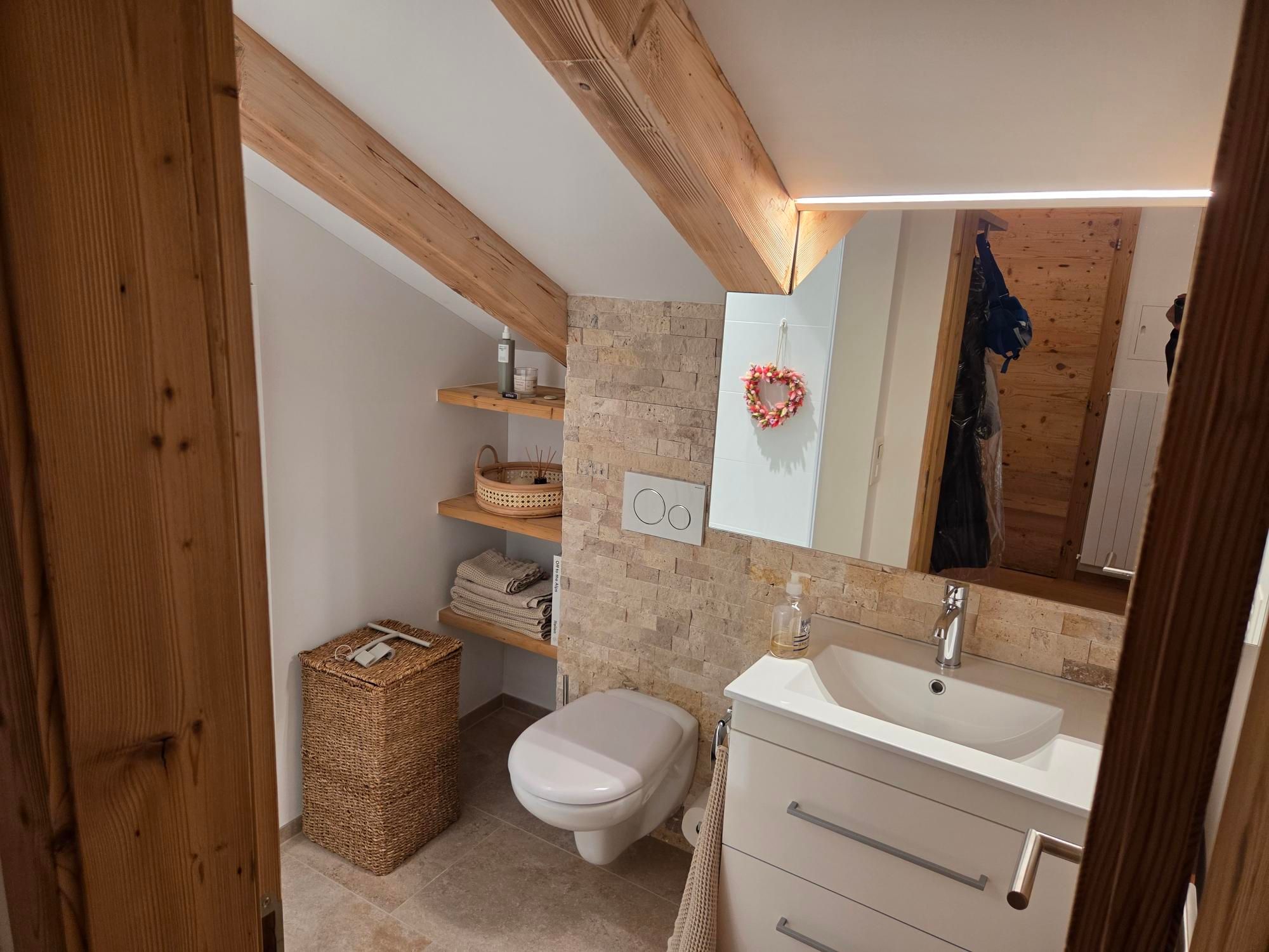 Appartamento di lusso con vista spettacolare sulle montagne. Recentemente ristrutturato con materiali di alta qualità. Luminoso soggiorno e zona pranzo con cucina a vista, camino e balcone. Lavatrice nell’appartamento. Ampia camera matrimoniale con doccia/WC privato. Una camera doppia con possibilità di home office, oltre a un comodo divano letto per 2 persone. Wi-Fi gratuito. 1 posto auto esterno.Leggi di più